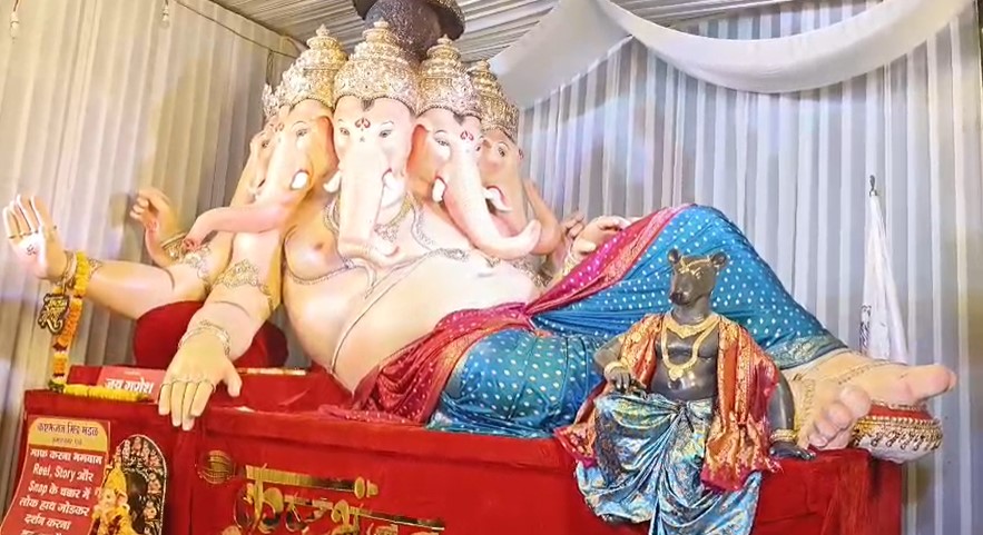 ण्यात आला आहे. विशेष म्हणजे मंडळाने वृंदावन येथून आणलेल्या मातीतून गणेशाची आकर्षक मूर्ती साकारली असून त्यात गाईला देण्यात येणाऱ्या चाऱ्याचाही वापर करण्यात आला आहे.