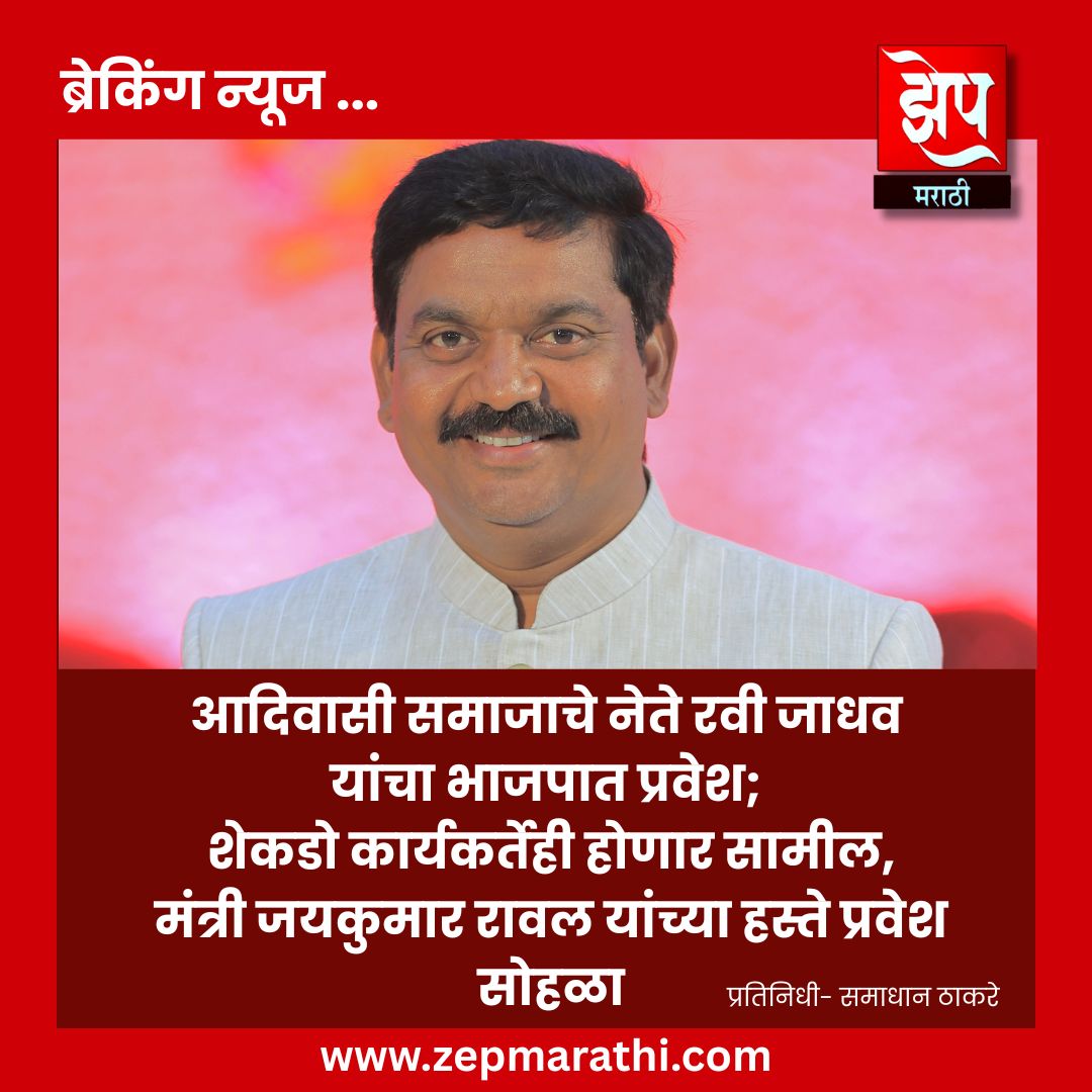 हा प्रवेश सोहळा पालकमंत्री तथा भाजप नेते जयकुमार रावल यांच्या हस्ते पार पडणार आहे. रवी जाधव यांच्या भाजप प्रवेशामुळे आदिवासी समाजात नव्या राजकीय समीकरणांची चर्चा सुरू झाली आहे.