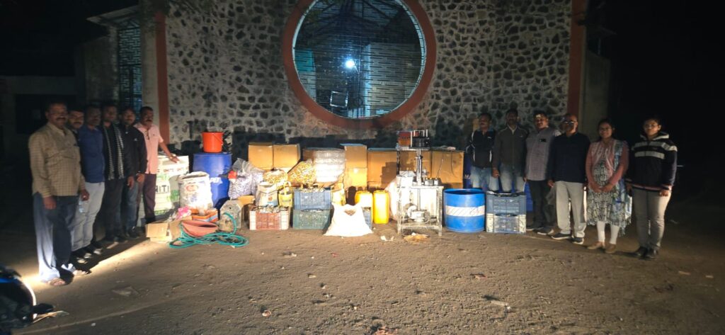 महानगरपालिका निवडणूक आचार संहिता कालावधी तसेच नाताळ व 31 डिसेंबर 2025 च्या अनुषंगाने निरीक्षक, राज्य उत्पादन शुल्क धुळे विभागाची बनावट मद्य निर्मितीच्या कारखान्यावर घडक कारवाई करतांना राज्य उत्पादन शुल्क विभागाच्या पथकावर जीवघेणा हल्ला अज्ञात हल्ले खोरान विरुद्ध मोहाडी पोलीस स्टेशन धुळे येथे फिर्याद दाखल करण्यात आली आहे.