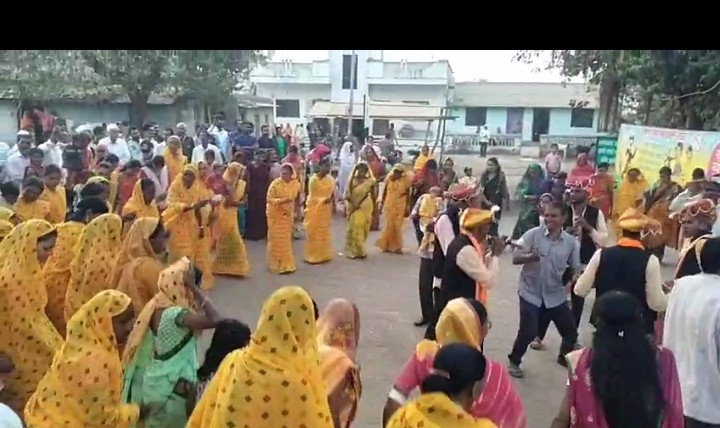 मंगलमय वातावरणात गावातून निघाली शोभायात्रा,