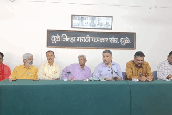 धुळ्यात तिसऱ्या भाषेची सक्ती व जाधव समिती विरोधात पत्रकार परिषद