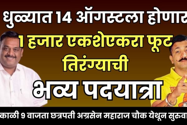 धुळे शहरात स्वातंत्र्य दिनाच्या पूर्वसंध्येला आणि अखंड भारत संकल्प दिनानिमित्त गुरुवारी (१४ ऑगस्ट) सकाळी ९ वाजता १ हजार एकशेएकरा (११११) फूट लांबीच्या तिरंगा ध्वजाची भव्य पदयात्रा काढण्यात येणार आहे. या ऐतिहासिक पदयात्रेचे आयोजन शहराचे आमदार अनुप अग्रवाल आणि हिंदवी स्वराज्य संघटनेतर्फे करण्यात आले आहे. ही पदयात्रा मालेगाव रोडवरील छत्रपती अग्रसेन महाराज चौक येथून सुरुवात होईल….